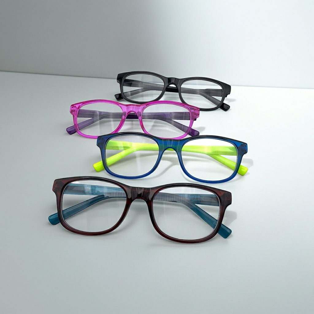 This box contains a resupply of children's distance glasses (smaller frames), including frames and lenses for the backpack.
